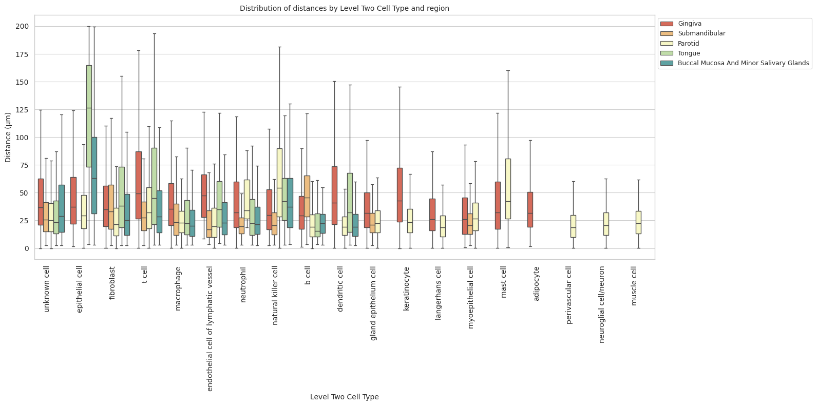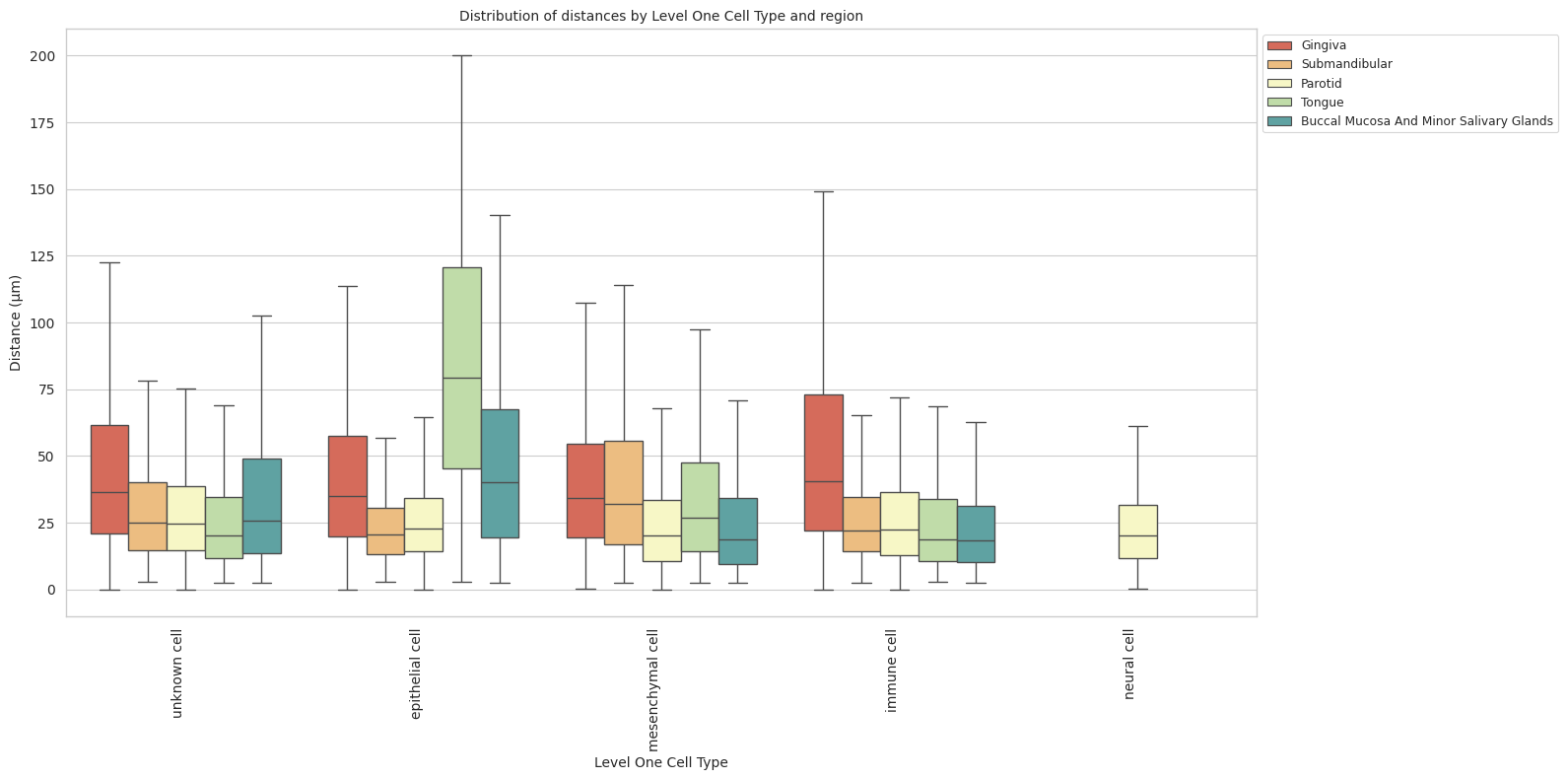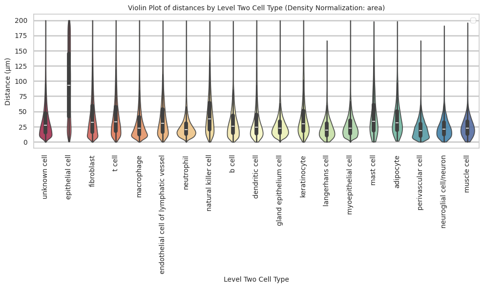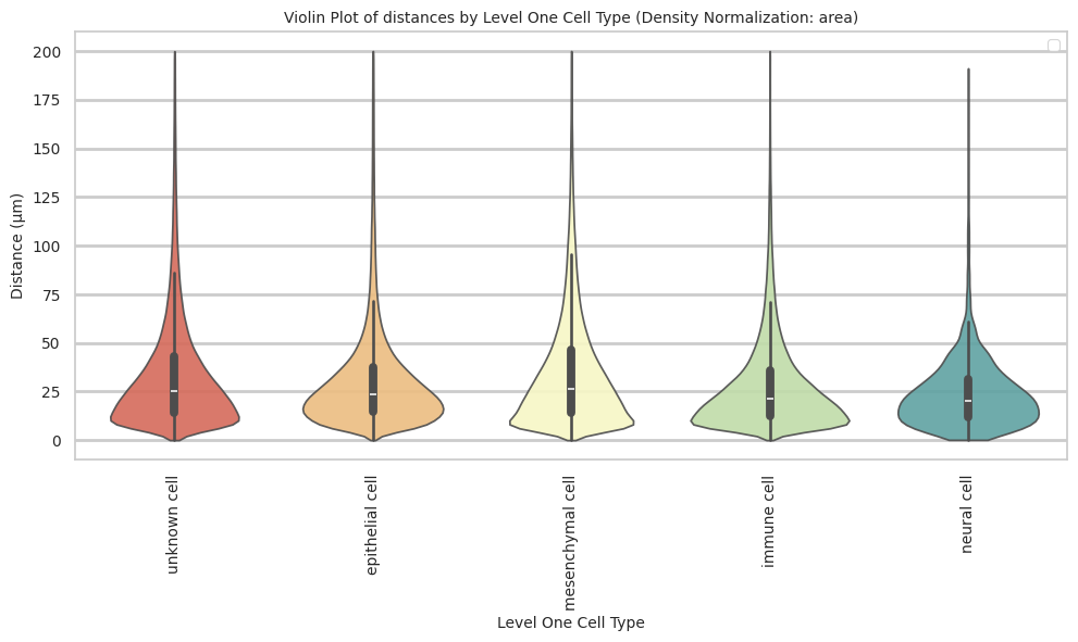 Analyze and visualize cell-to-nearest-endothelial-cell distance distributions for the