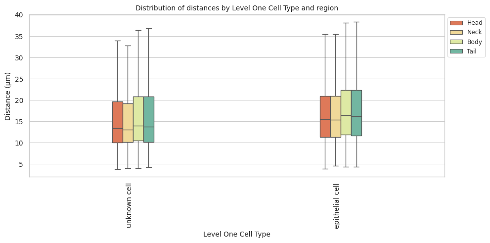 g ='Unique Region', y='Distance', hue=cell_type_level,