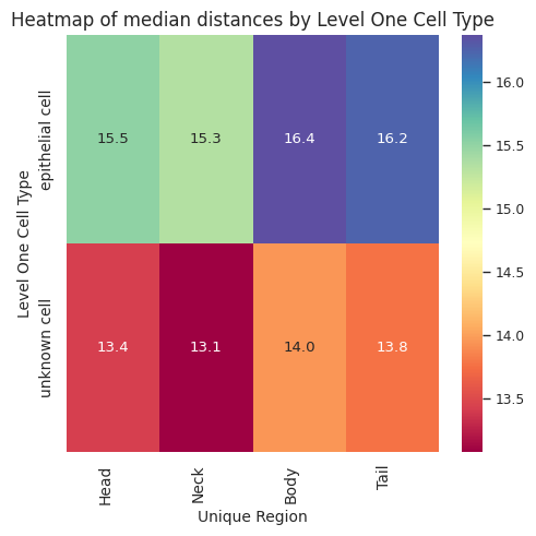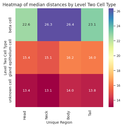 Level Two Cell Type | Unique Region | mean_distance | median_distance | min_distance | max_distance | |