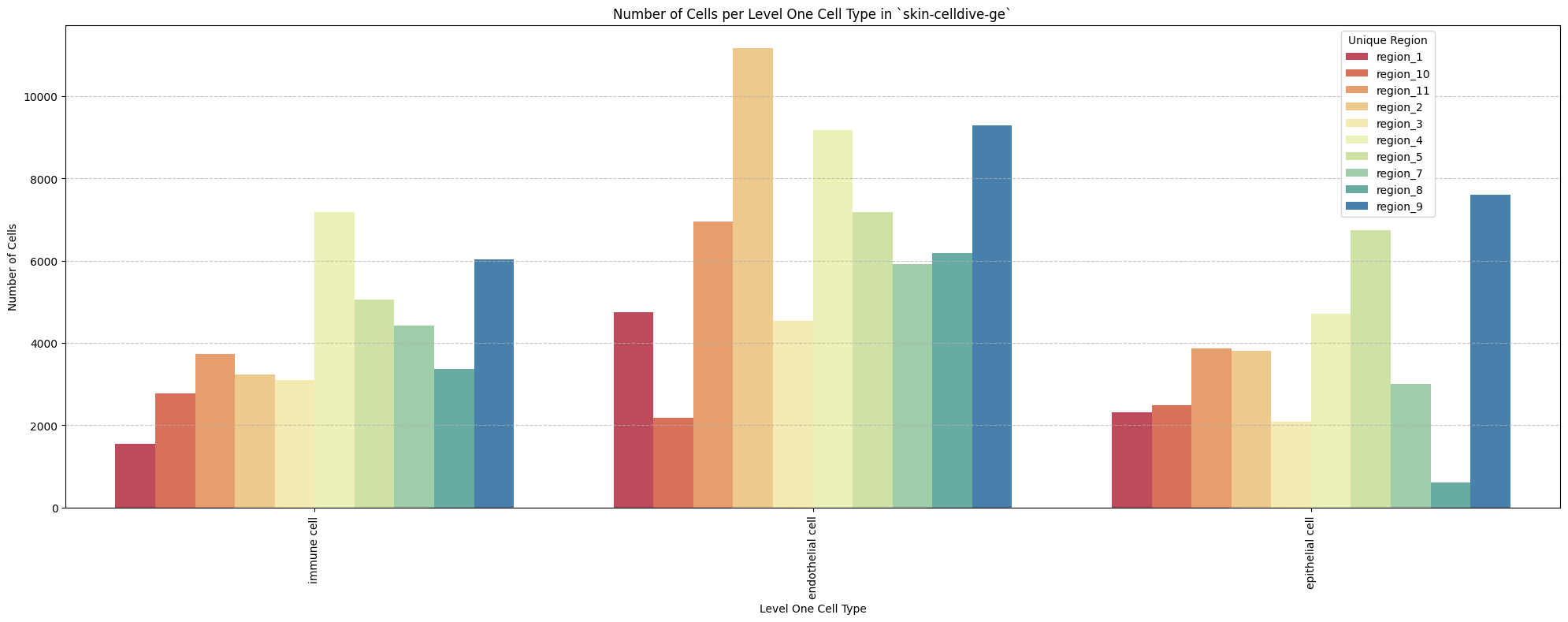 # Print the total number of unique cell types per dataset. Compute separately for each cell type column (Level One Cell Type, Level Two Cell Type, Level Three Cell Type, Original Cell Type).