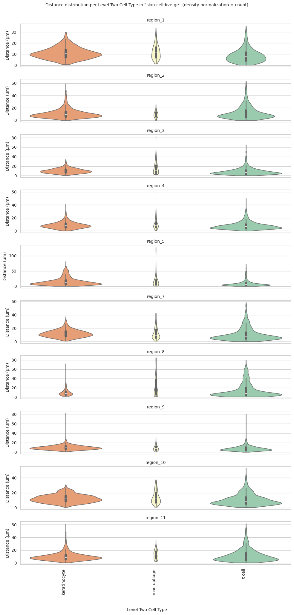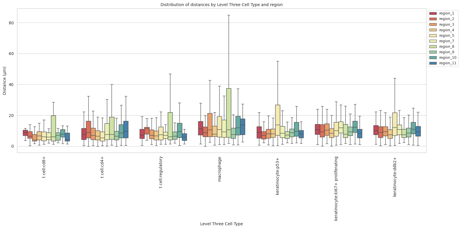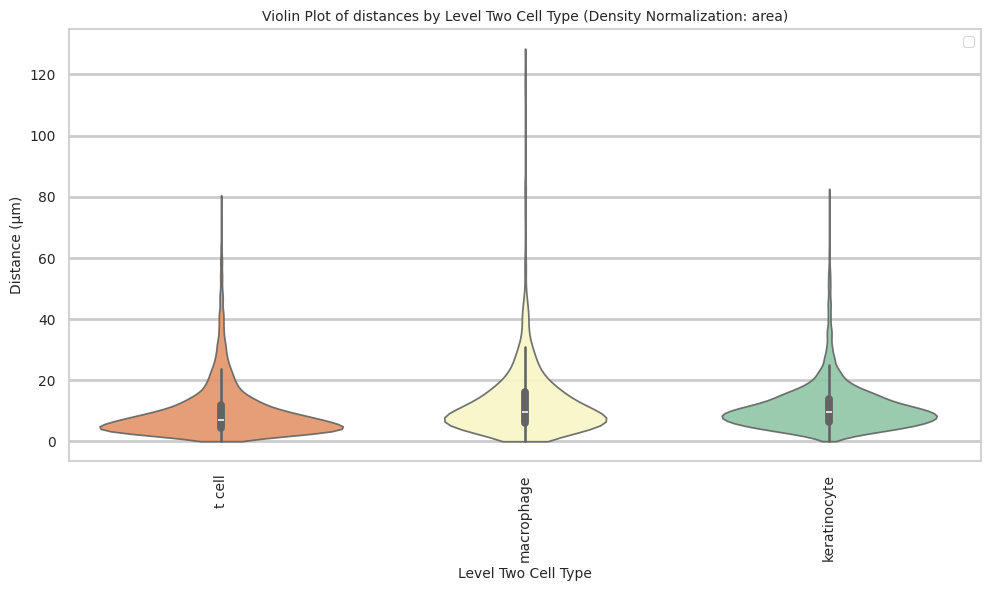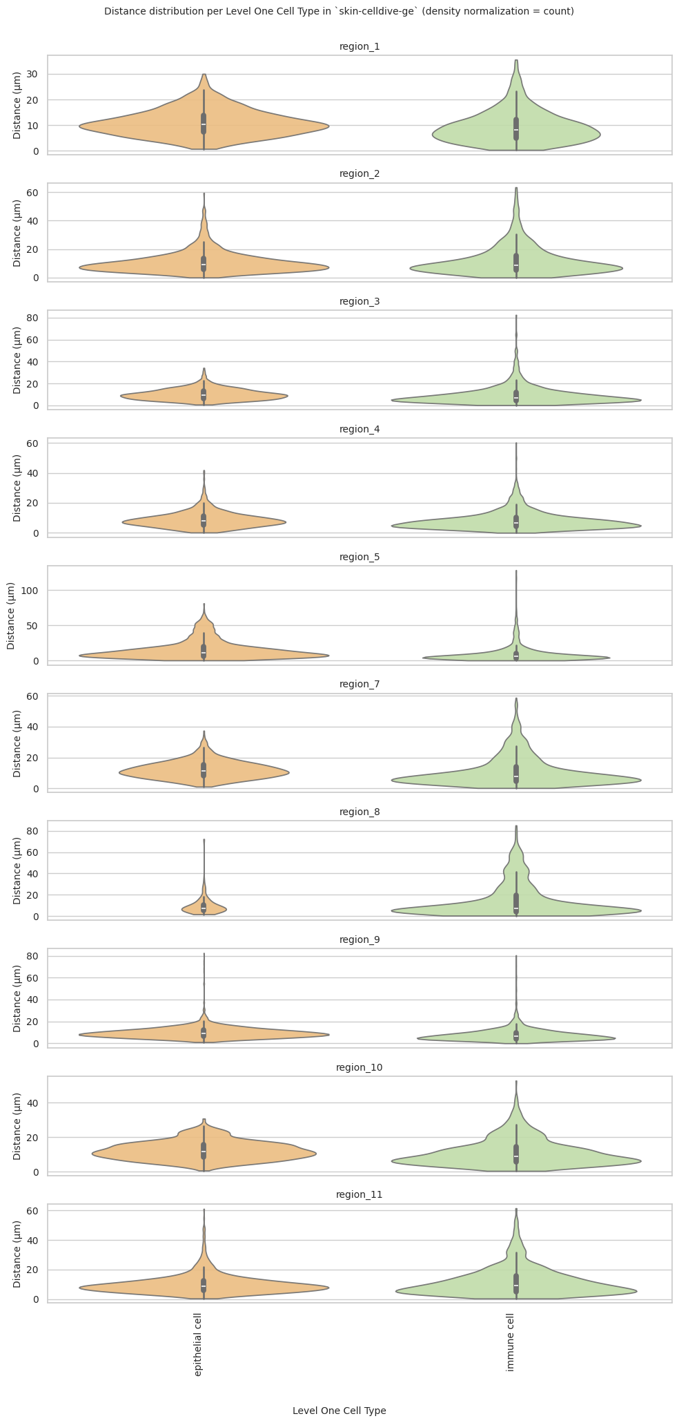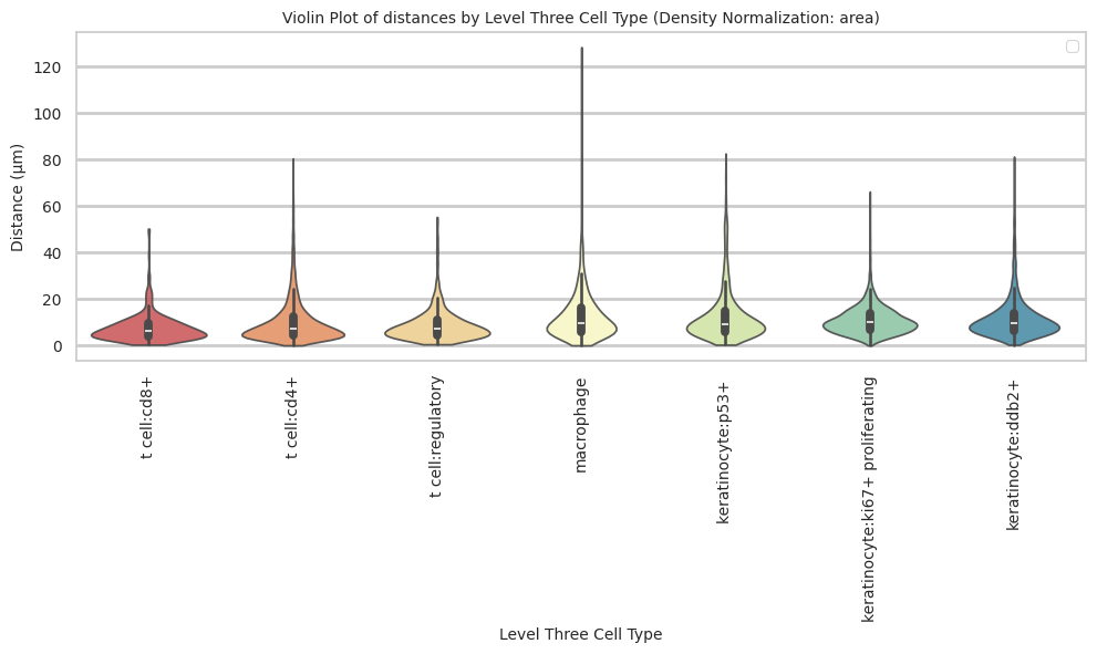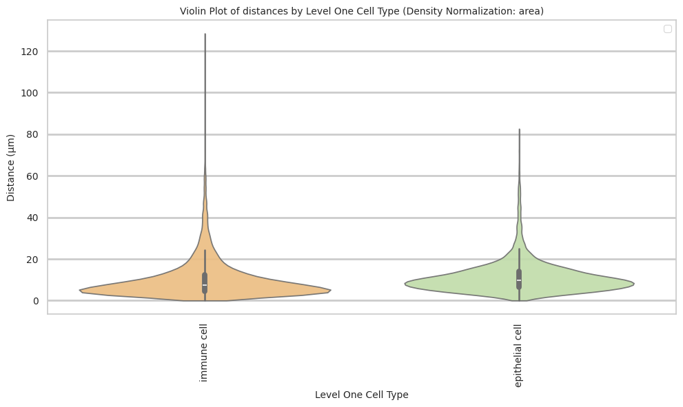 Analyze and visualize cell-to-nearest-endothelial-cell distance distributions for the
