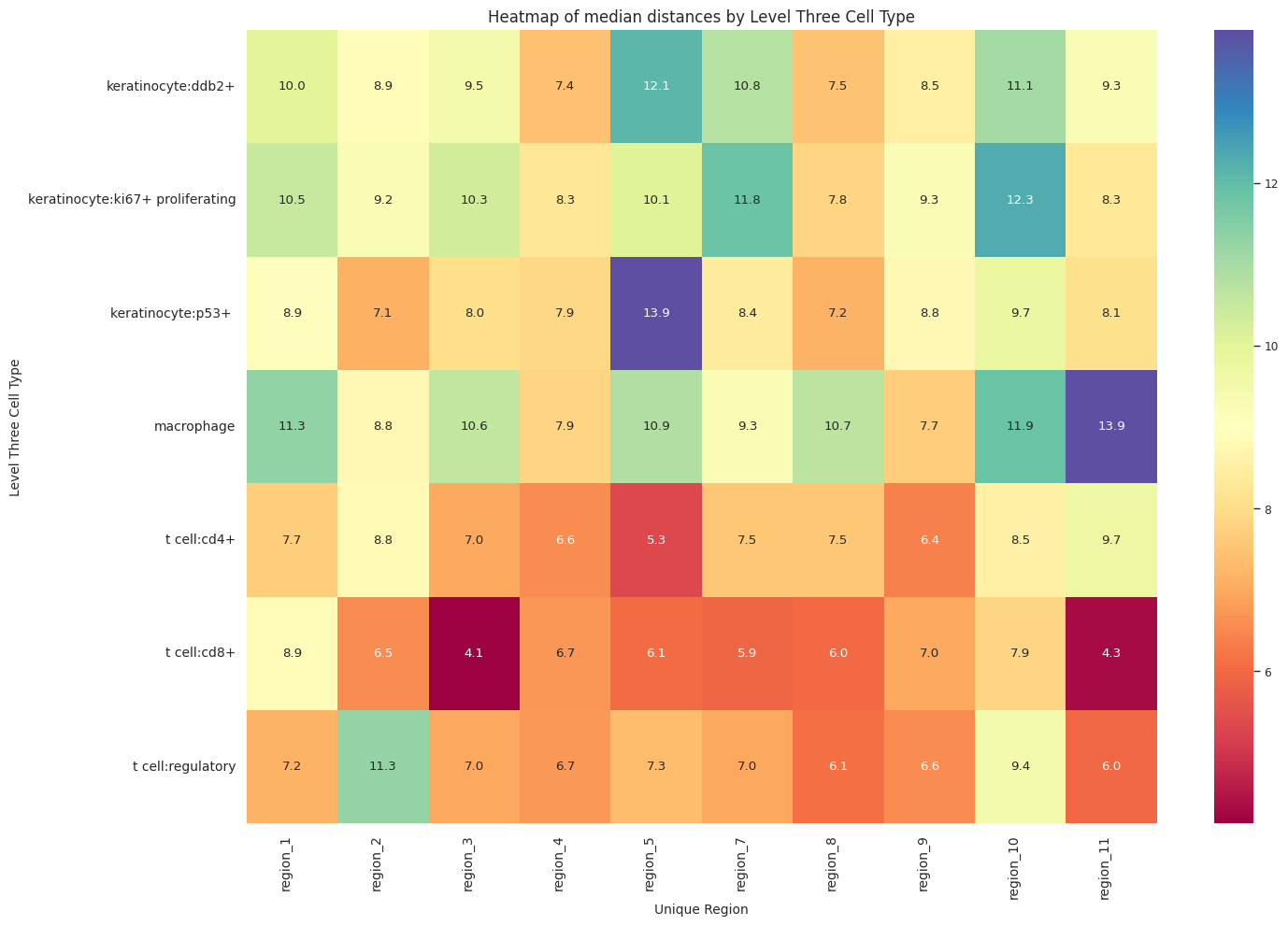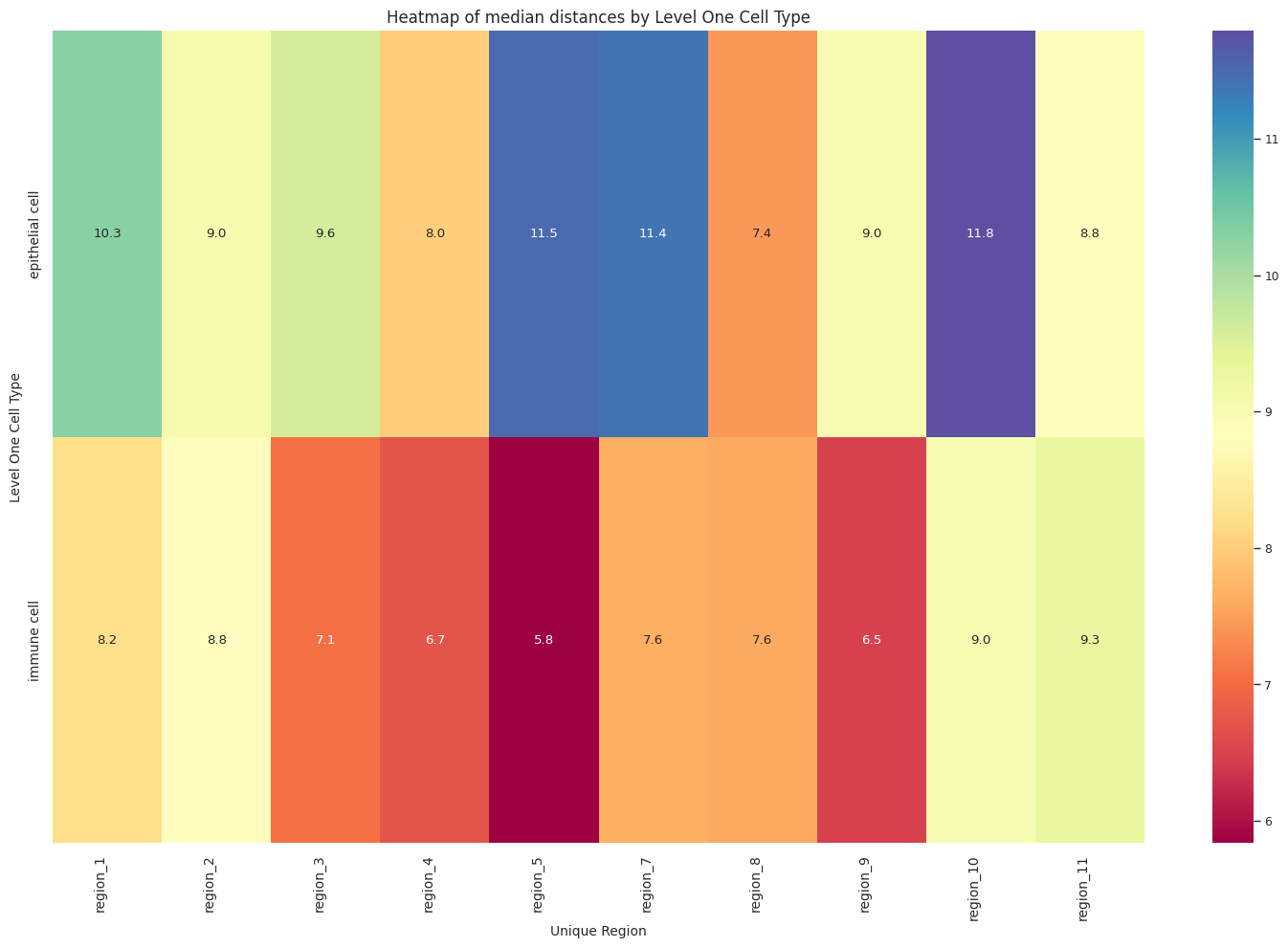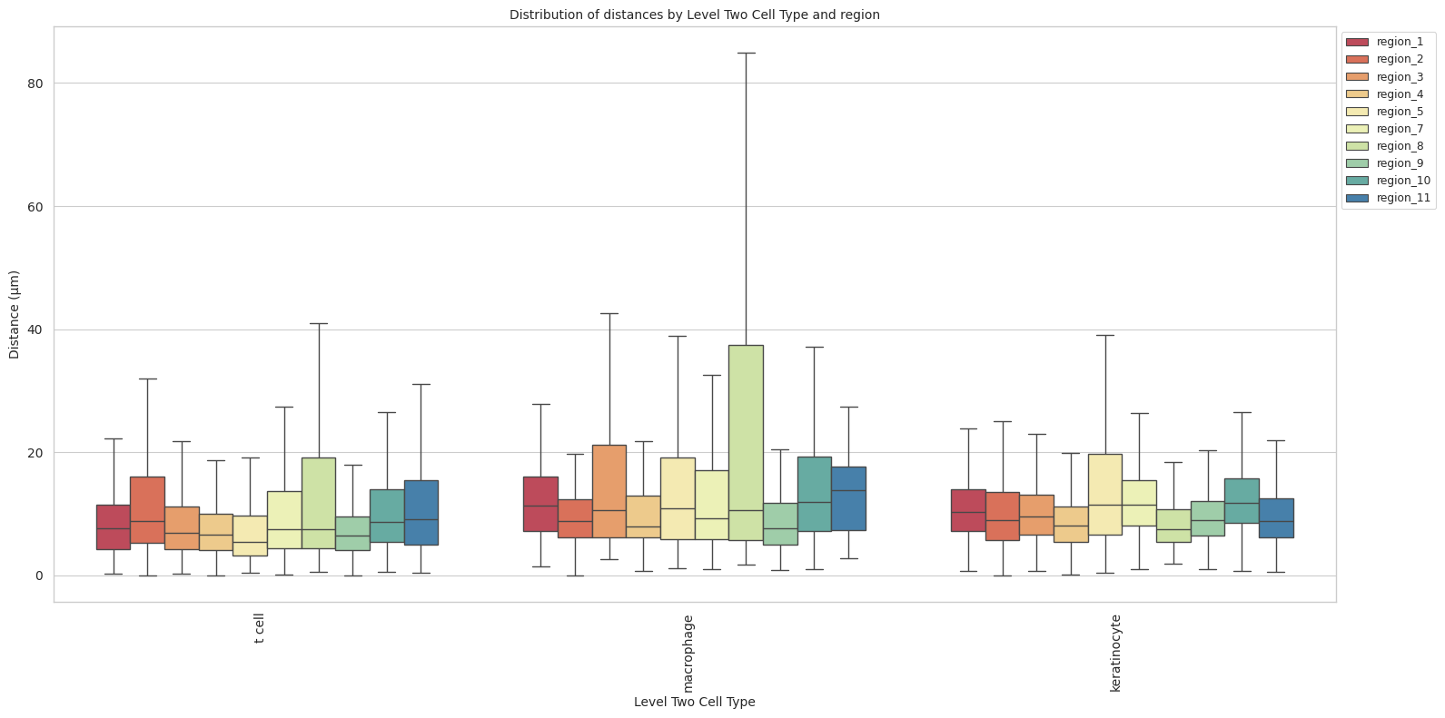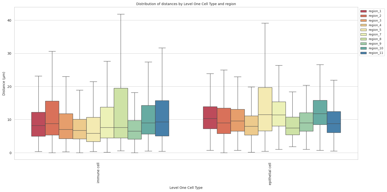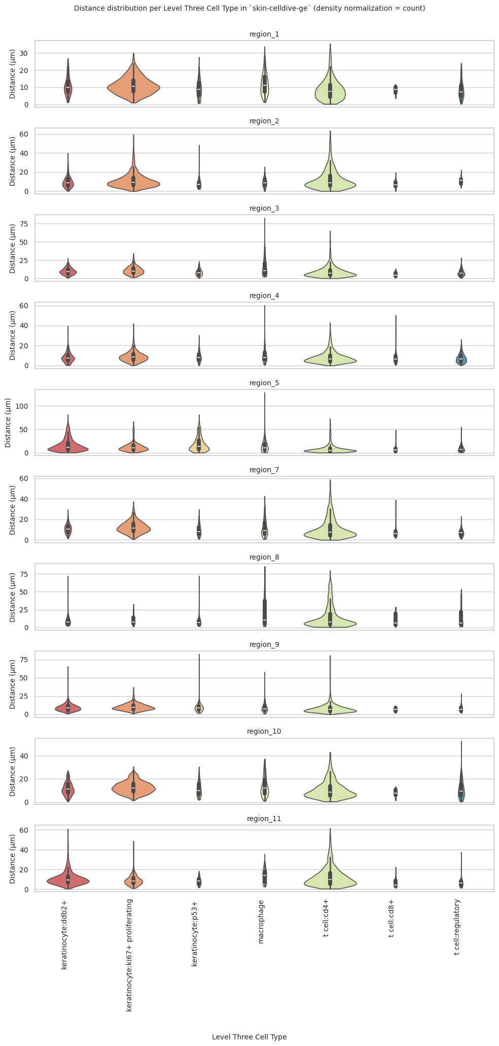 Analyze and visualize cell-to-nearest-endothelial-cell distance distributions for the
